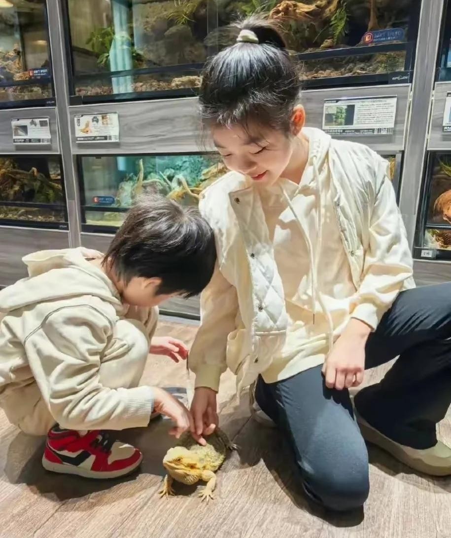 4. 然而离婚之后,公众视线中的亲子日常几乎全被章子怡承包。她时常带着两个孩子出游、参观展览,社交平台上偶尔出现的亲子片段,无一不是她陪伴左右的画面。